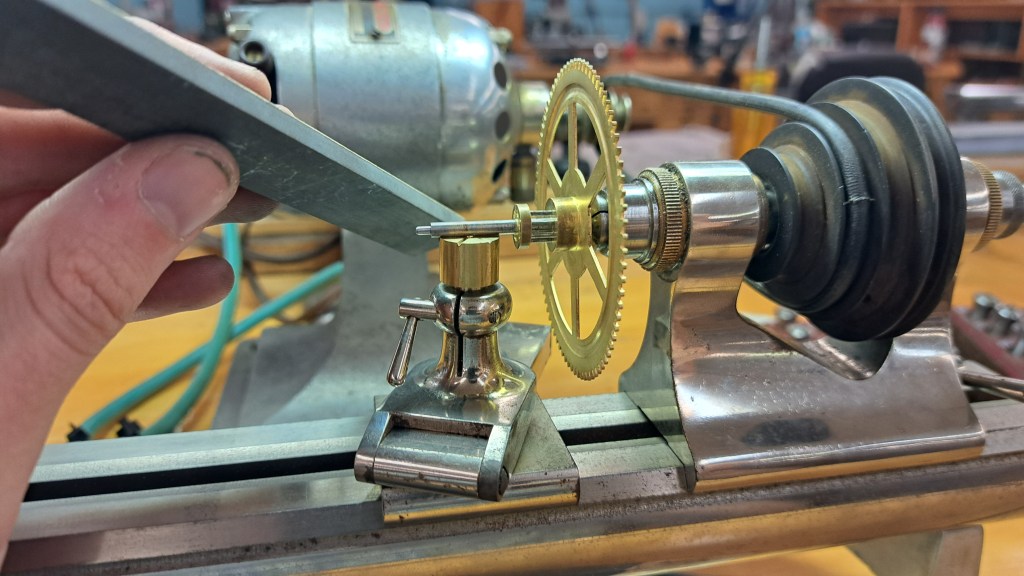 I polished all the pivots, and reground them where necessary, on the watchmakers lathe.