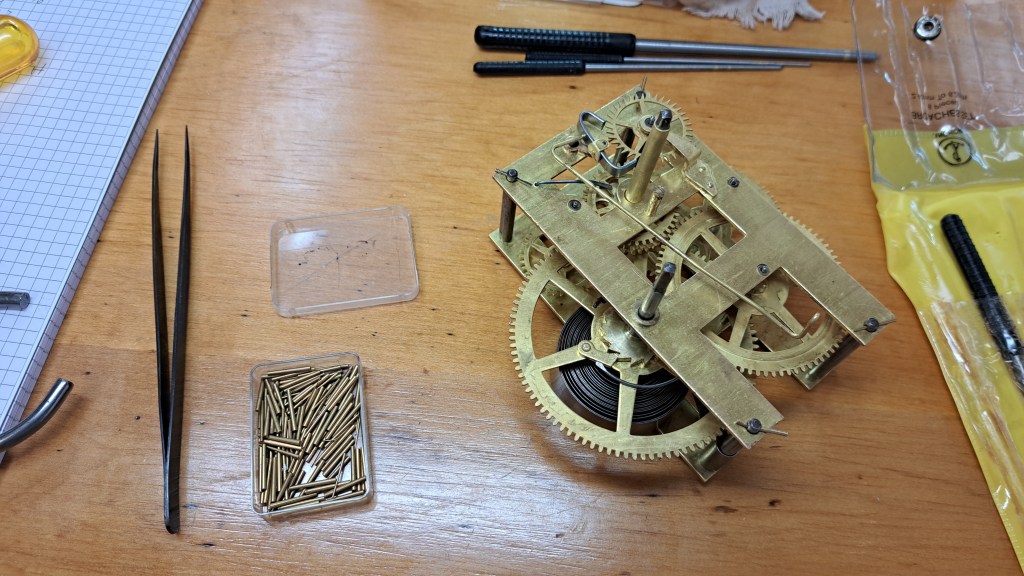 Then I cleaned the bushings with peg wood (basically a toothpick), and burnished them with smoothing broaches. None of the bushings had excessive wear so I did not need to replace any.