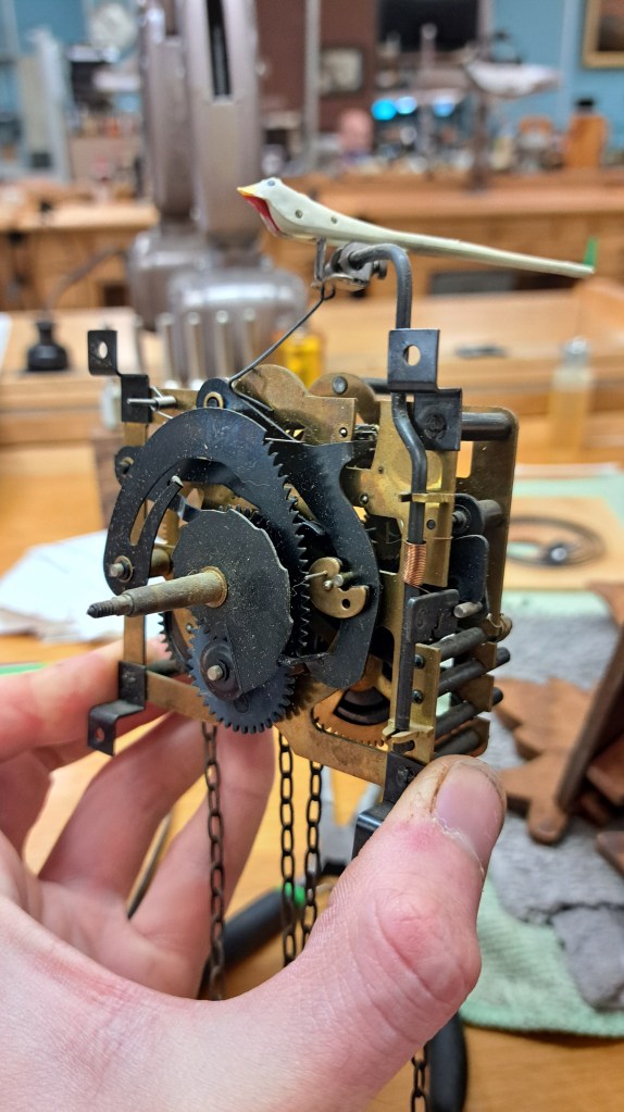 After testing the escapement, re-housing the movement, fitting the bellows back in place, and setting the linkages all up the cuckoo finally came back to life!