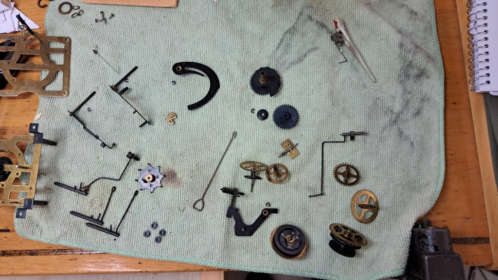 I then acquainted myself with the mechanism and disassembled it. Next I gave most of the parts a wash in an ultrasonic cleaner, followed by water and a toothbrush, then drying with air and a hotbox.