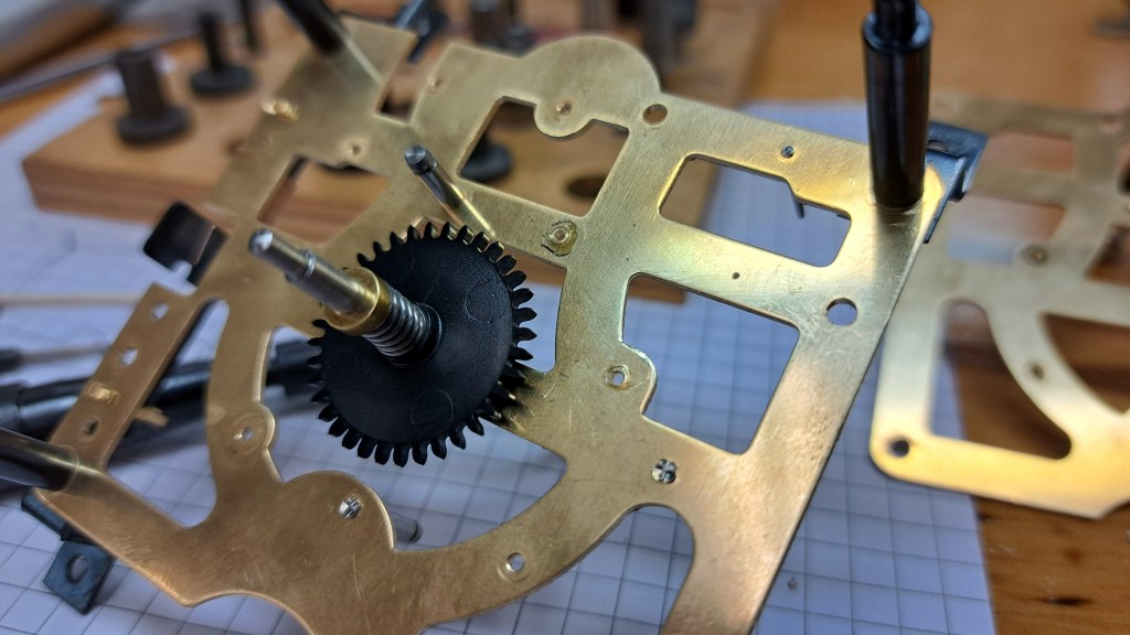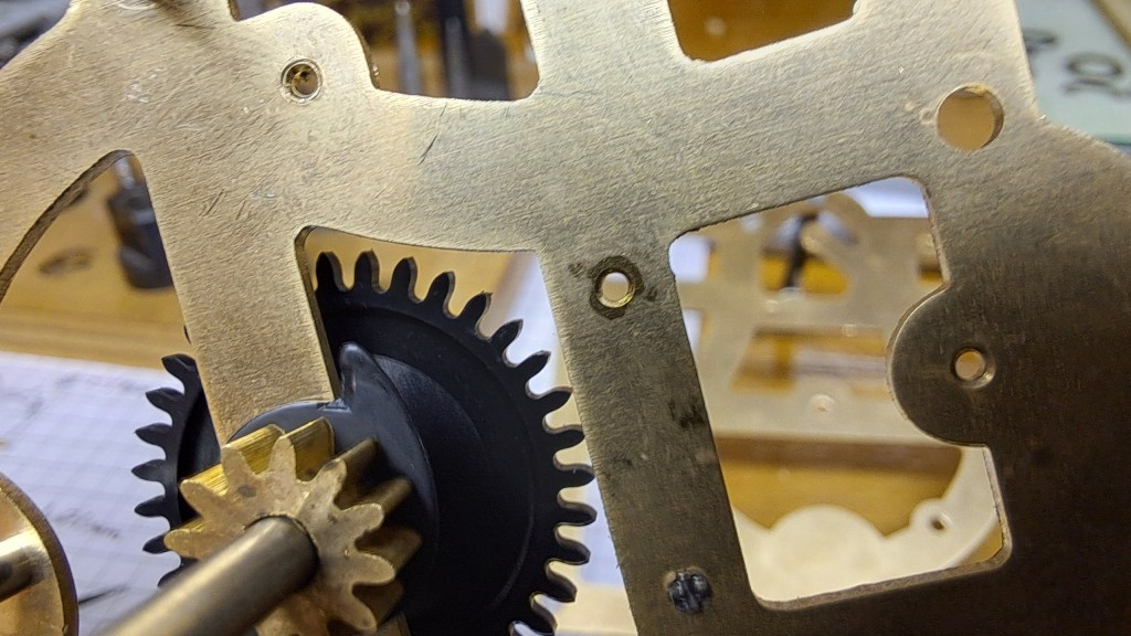 Bushing or re-bushing involves reaming out the old hole and fitting a new tube with a properly sized pivot hole. Bushing are standard parts in the clock making trade. The real trick is enlarging the old hole in a way that keeps it centered on the original pivot location and not biased toward the direction the pivot wore in. This is done by making the reamer cut mostly in the direction opposite the wear. It requires a bit of “feel” and I previously practiced doing just that procedure.
