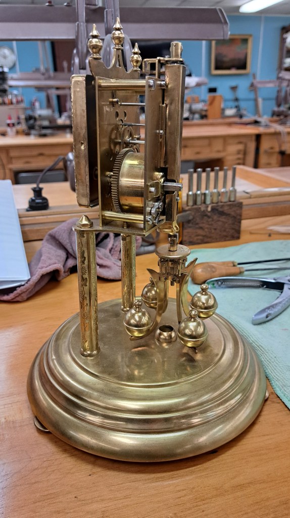 Anniversary or 400 day clocks are simple because they just tell time – no chimes or strikes – but are also tricky because they are very sensitive since they are supposed to run for so long.