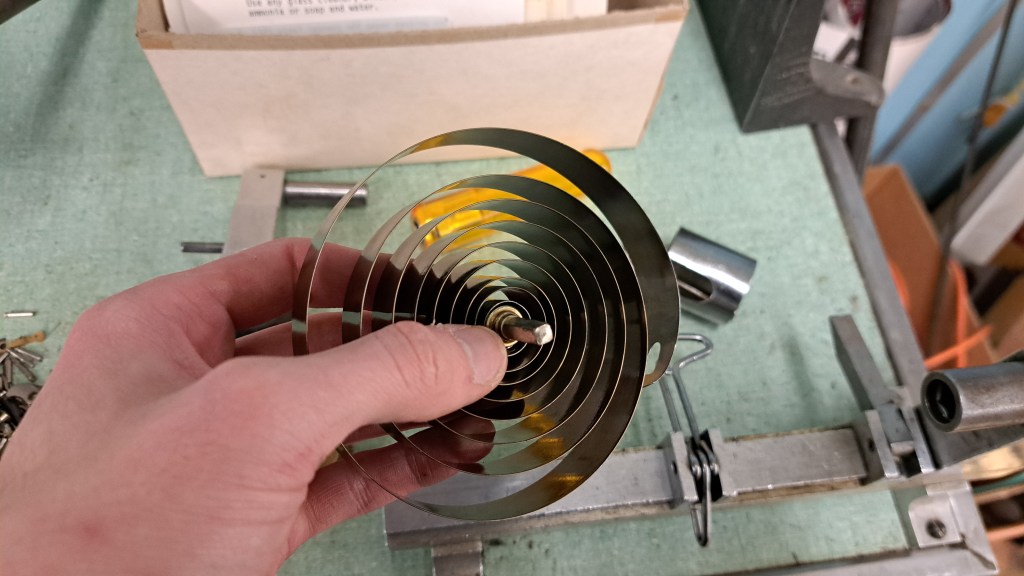 Cleaning and checking the mainspring is extra critical in a 400 day clock because the movement needs all the power it can get. My instructor said that it is mostly standard to always replace the spring in a 400 day clock because any wear or tiredness in the spring means failure.