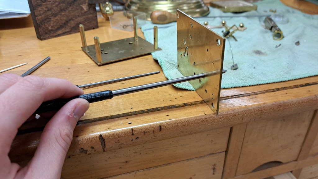 Burnished the pivots on the watchmakers lather (forgot to take a picture), and smoothed the pivot holes.