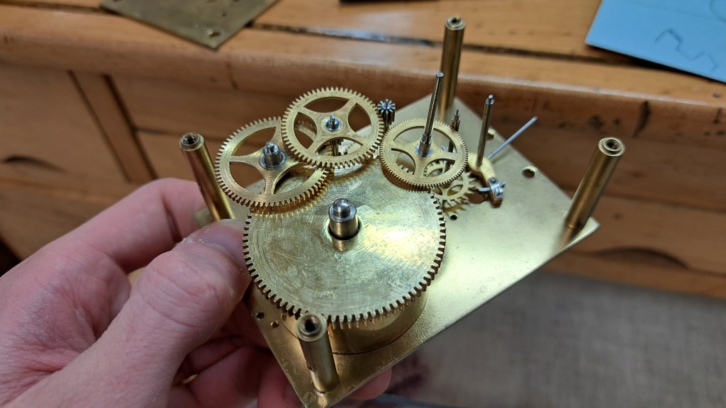The escapement working well is critical in such a sensitive clock so I carefully checked the “locks” and “drops.”