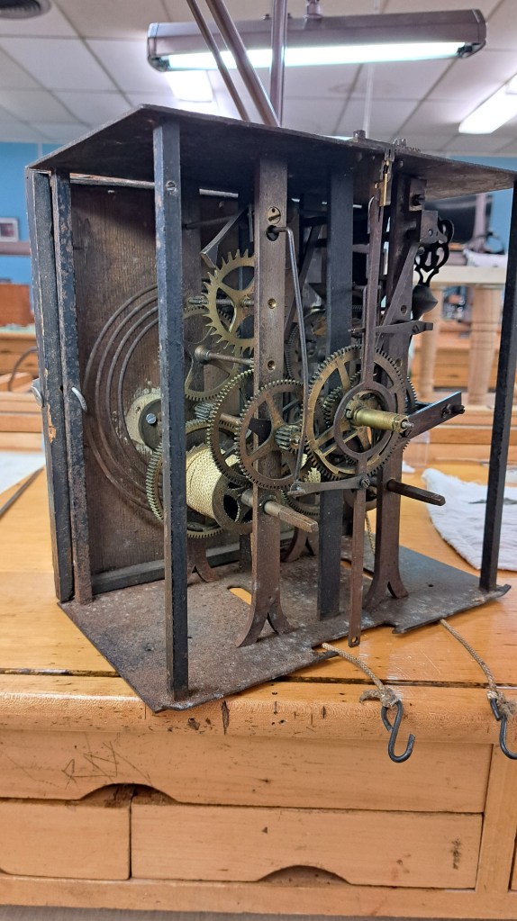 And putting it all back together! I wish I had taken a video of it back in it’s case and striking. As is typical with these clocks, it strikes the hour, then strikes the hour again a minute or two after the hour – just in case you missed it the first time!