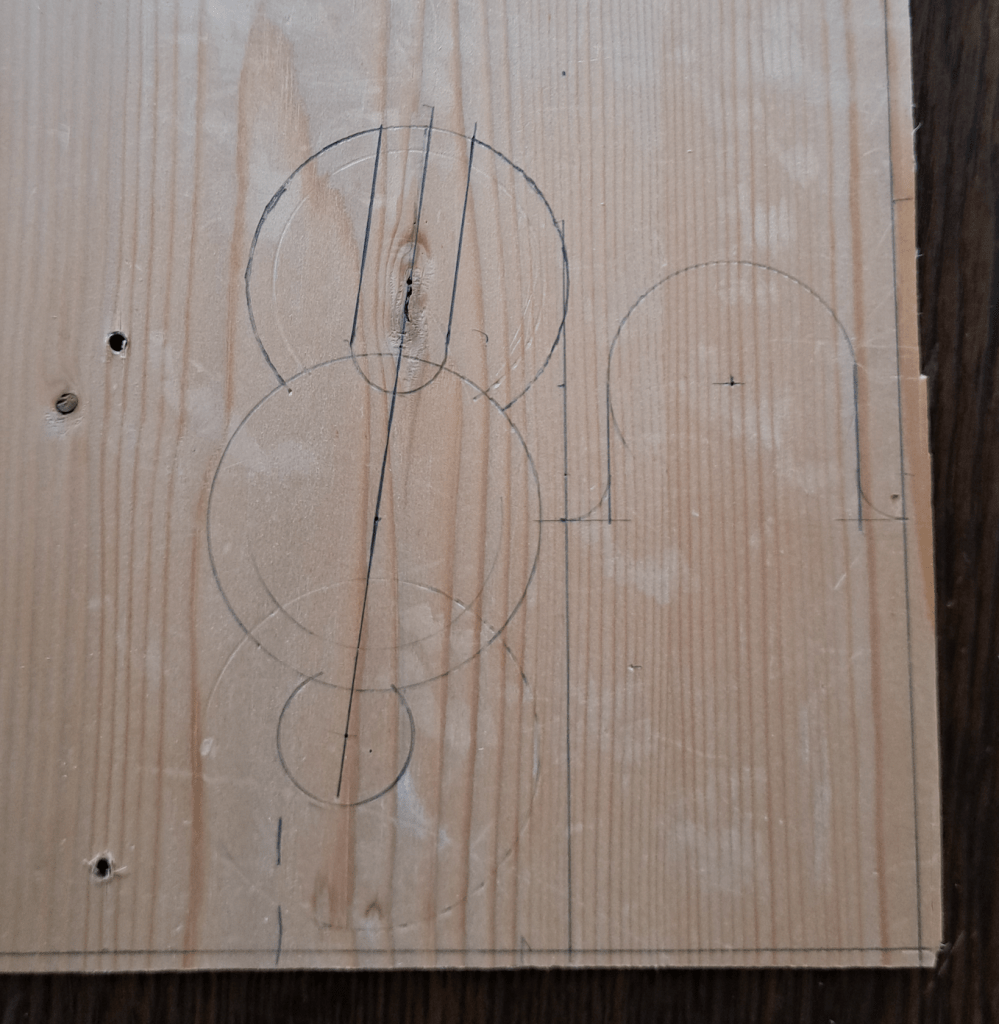 I set out making my own based off the pictures I took. On a piece of scrap board I sketched out the base and jaws.