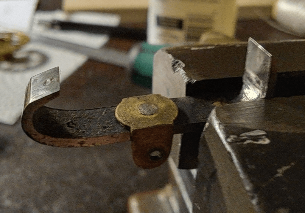 The escapement pallets had some wear in the form of grooves (see above). This indicates it has lived a good life. Let’s make sure it can live some more by polishing out the grooves (see below).