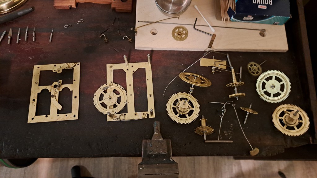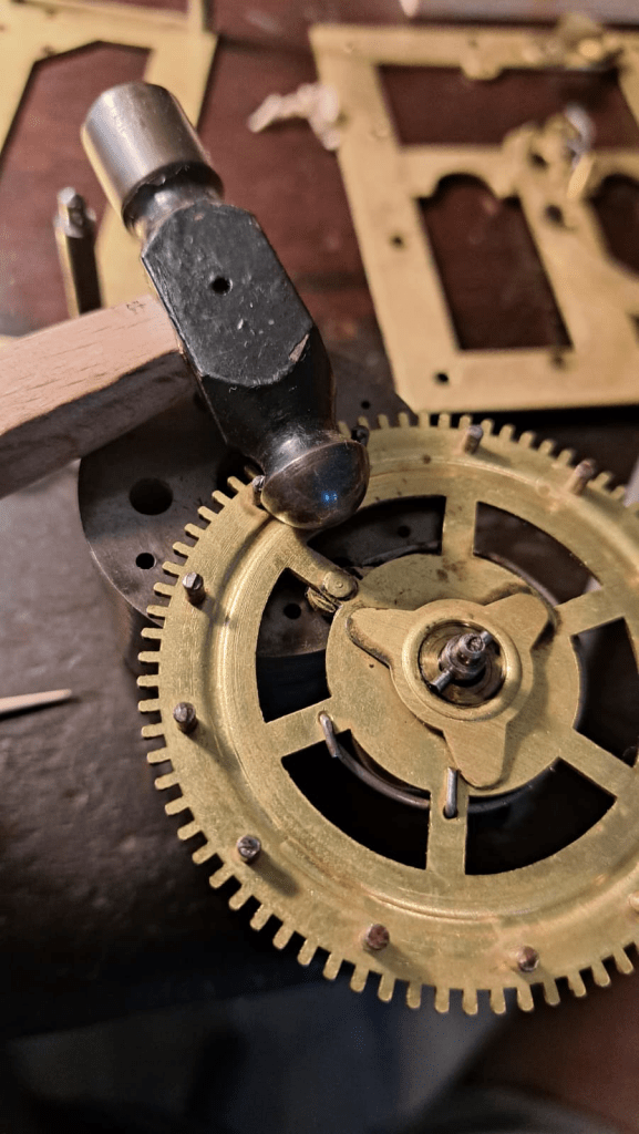 Then I spent some time adjusting the drops and locks of the escapement, so it would have a nice, fairly quiet tick tock.